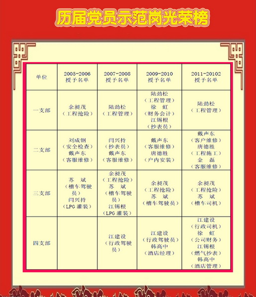 公司黨委歷年表彰榮譽榜