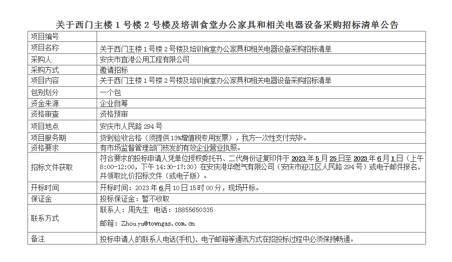關于西門主樓1號樓2號樓及培訓食堂辦公家具和相關電器設備采購招標清單公告