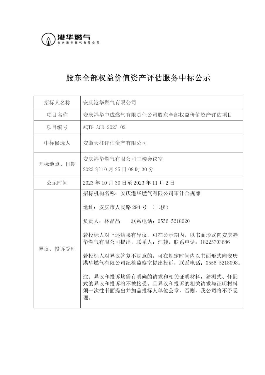 股東全部權益價值資產(chǎn)評估服務中標公示