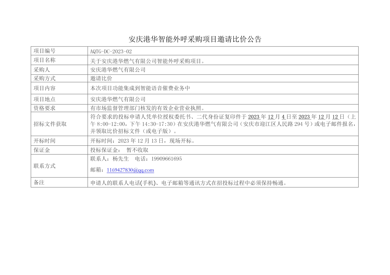 安慶港華燃?xì)庥邢薰局悄芡夂舨少忢?xiàng)目邀請(qǐng)比價(jià)公告
