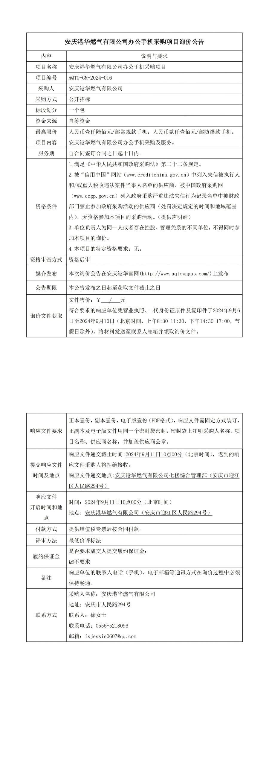 安慶港華燃?xì)庥邢薰巨k公手機(jī)采購(gòu)項(xiàng)目詢價(jià)公告