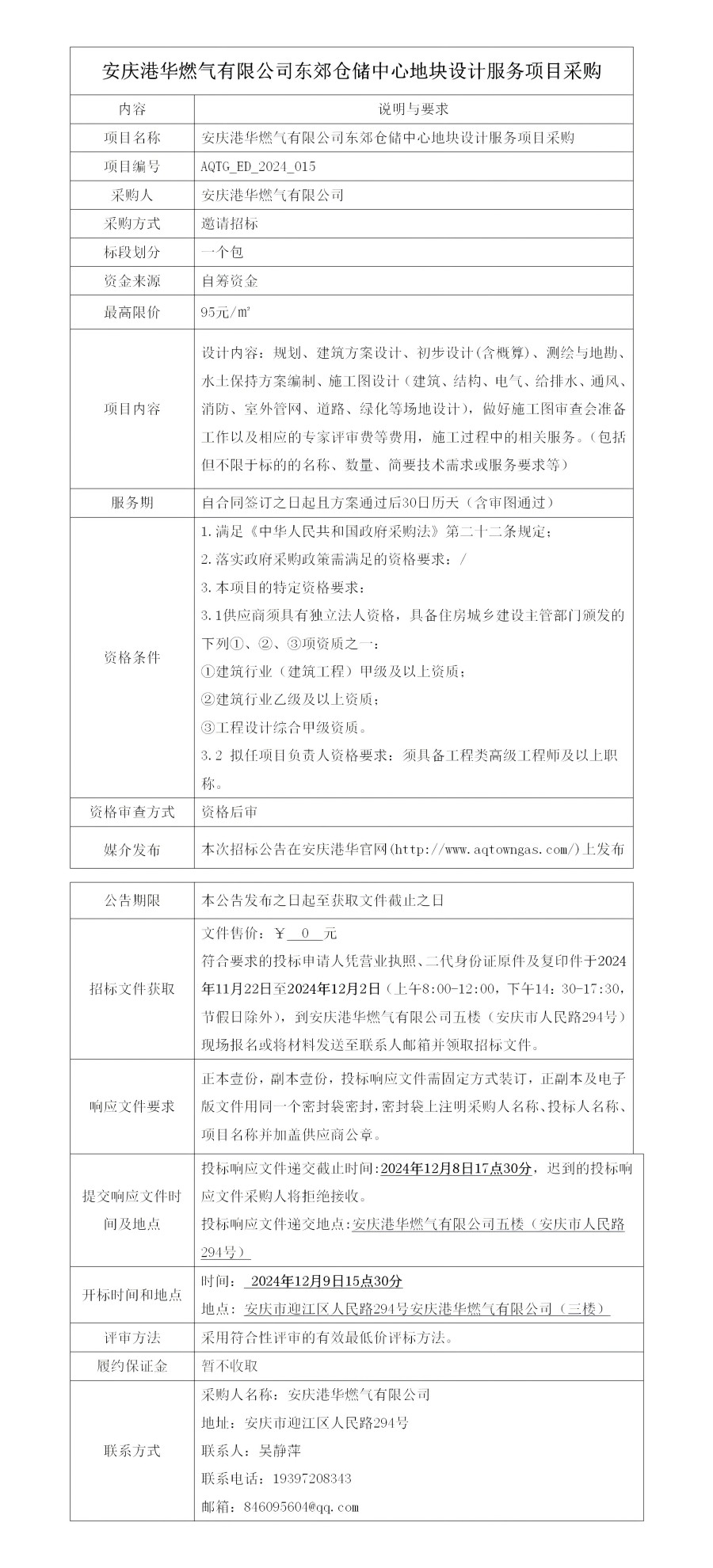 安慶港華燃?xì)庥邢薰緰|郊倉儲(chǔ)中心地塊設(shè)計(jì)服務(wù)項(xiàng)目采購