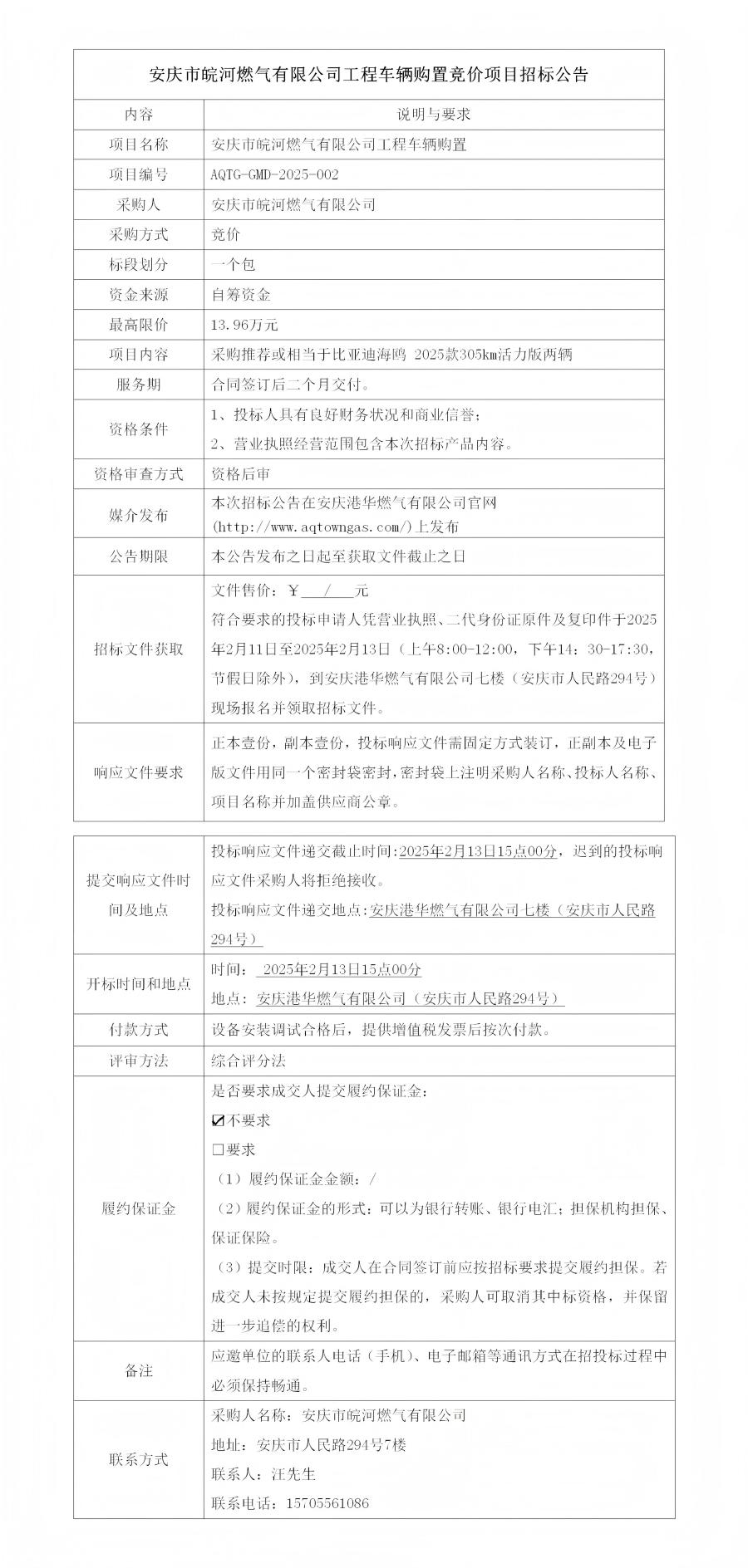安慶市皖河燃?xì)庥邢薰竟こ誊囕v購置競價(jià)項(xiàng)目招標(biāo)公告