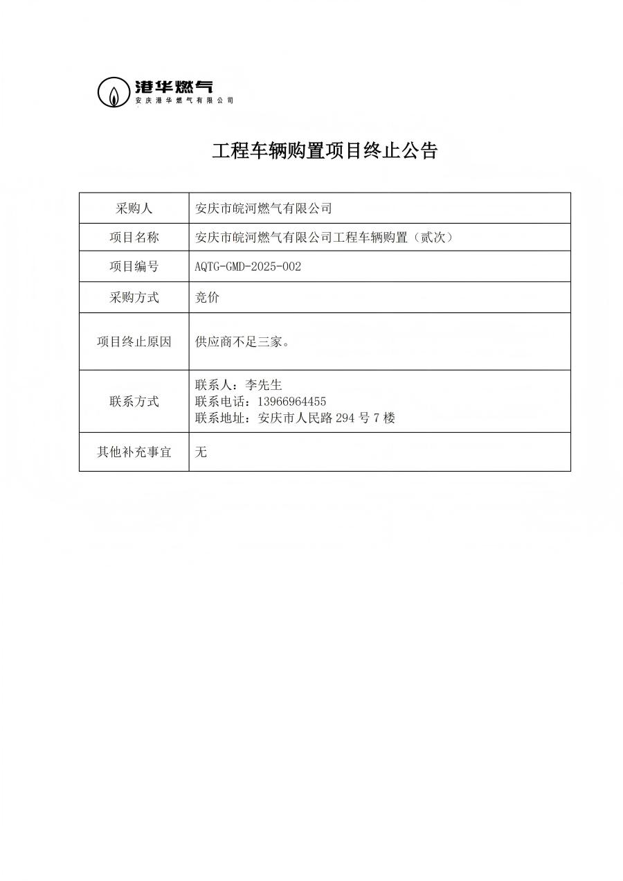 工程車輛購(gòu)置項(xiàng)目終止公告