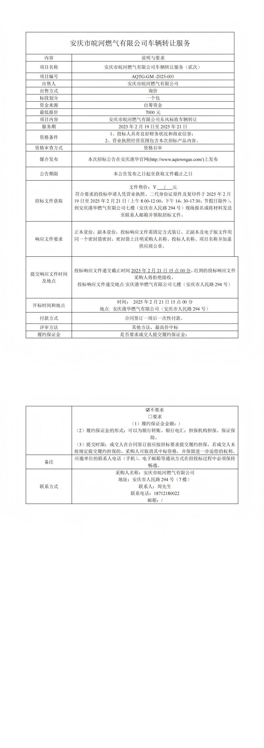 安慶港華燃?xì)庥邢薰緩U品回收服務(wù)項(xiàng)目詢價(jià)...