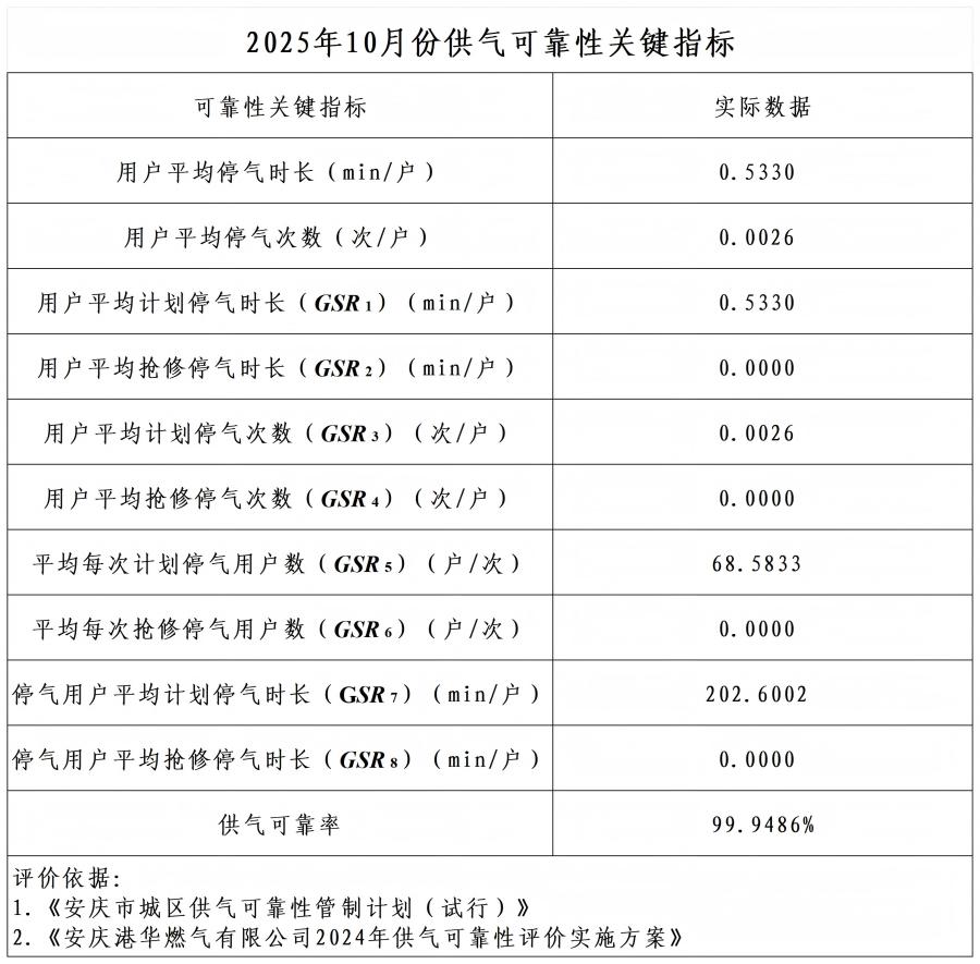 2025年10月供氣可靠性關(guān)鍵指標(biāo) 發(fā)布時間:2025-11-09    閱讀次數(shù):240次