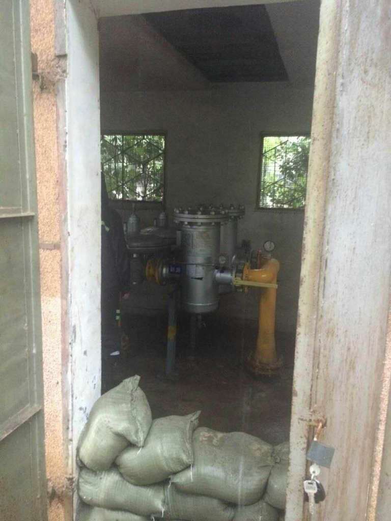 管網(wǎng)運行部門加大對調(diào)壓站高頻次排查,實行專人對點蹲守,防止積水對調(diào)壓柜運行造成影響,其中錢牌樓調(diào)壓站2日上午在強降雨后出現(xiàn)了較深積水,公司立即增派人手清除。2日晚的連續(xù)暴雨致紡織南村調(diào)壓站周邊開始出現(xiàn)大面積積水,搶險人員立即筑起沙包防線,保障了調(diào)壓站正常運行。工程施工人員重點加強對在建工地的安全防護,出動30余人次仔細檢查未完工的各路段管道敷設(shè)現(xiàn)場,必要的進行現(xiàn)場路面防護,避免施工雜物堵塞排水口影響排水。生產(chǎn)運行人員全員到崗,加大供電系統(tǒng)巡查頻率,暴雨過后及時抽水,保障供電系統(tǒng)安全,同時及時疏通站內(nèi)、外排水系統(tǒng),保持站內(nèi)排水順暢。同時,安慶港華嚴格貫徹落實市防指、市城防指及住建委防汛工作會議精神和相關(guān)要求,積極響應(yīng)政府應(yīng)急指令,對應(yīng)啟動公司《防汛排澇應(yīng)急預案》,除完成保障燃氣安全供應(yīng)主要任務(wù)外,根據(jù)住建委要求,調(diào)集力量值守龍眠山路段,清除排水口雜物,打開雨水井加速路面積水排放,并安排專人提醒過往車輛及行人注意安全。