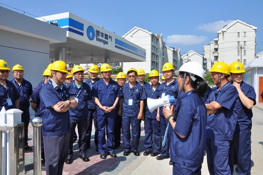 17日上午,巡查團(tuán)四十余人在安慶港華董事長潘炳應(yīng)、總經(jīng)理王政文先生的陪同下來到安慶港華路加氣站,陳永堅總裁首先帶領(lǐng)大家圍成了一個“心”形,拍攝了寓意 “安全在我們心中”的宣傳照,展現(xiàn)了港華人的安全理念和團(tuán)隊精神。在港華路加氣站,巡查團(tuán)考察了站區(qū)環(huán)境建設(shè)、工藝區(qū)設(shè)備維護(hù)、噪音治理工程、加氣服務(wù)流程和站區(qū)安全管理等項目,陳總裁等集團(tuán)領(lǐng)導(dǎo)對港華路加氣站的建設(shè)、管理成效給予了充分肯定。