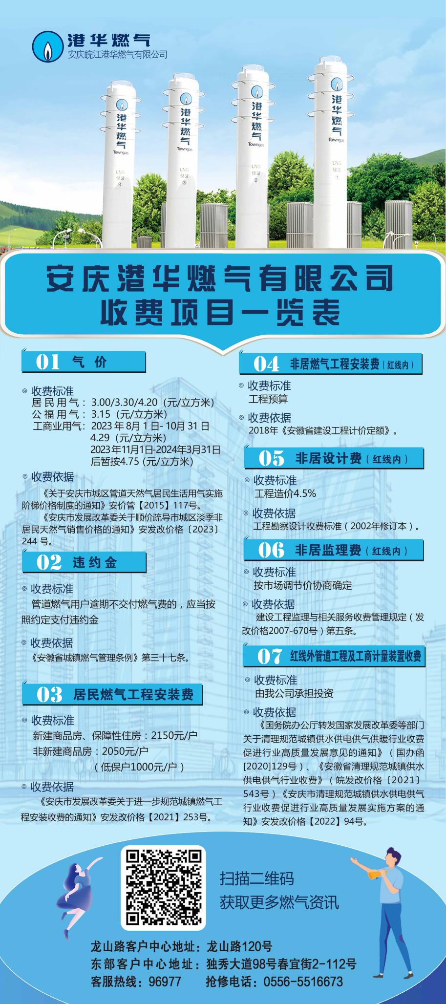 安慶港華燃氣有限公司收費項目一覽表(2023.11.07)